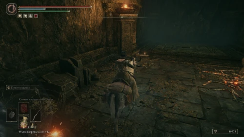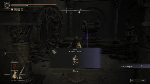 Чтобы добраться до него, идите налево и заверните к разрушенному помещению, зайдите за него и спрыгните вниз. Пройдите в комнату и, разобравшись с мухами, следуйте вперед до креста Микеллы. Выйдите из комнаты, и вы сразу увидите алтарь, где у лежащего под ним трупа можно забрать Засохший букет.