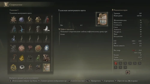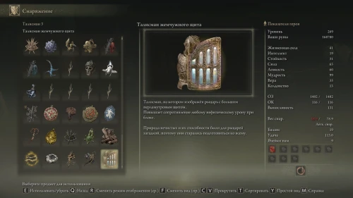В сочетании с Талисманом большого щита, повышающего эффективность блока, Талисман жемчужного щита будет работать еще эффективнее. Еще один большой плюс этого предмета в том, что найти его можно практически с самого начала дополнения, без боя с каким-либо сильным боссом.