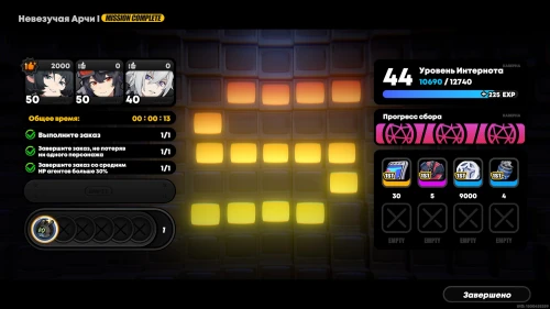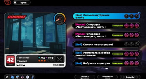 Далее возвратитесь в видеопрокат, взаимодействуйте с системой HDD и начните выполнение боевого заказа «Сильная актерская школа». Игра посоветует вам взять ледяных и эфирных персонажей. Рекомендуем выбрать своих самых мобильных героев, способных без проблем уклоняться от атак врагов, например, Эллен, Джейн Доу, Нэкомату, Чжу Юань или Грейс, так как вы провалите испытание, если пропустите больше 10 ударов.