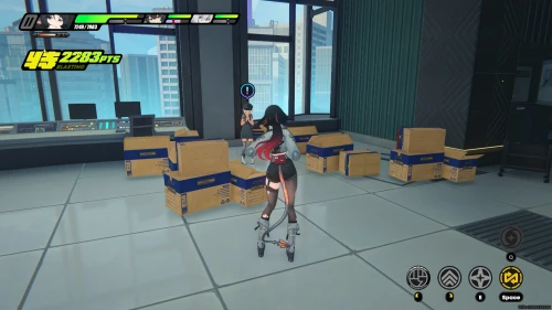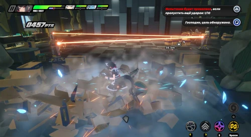 Начав заказ, поболтайте с Бродящим банбу и поднимитесь наверх. Разберитесь с группой ариманов, внимательно следя за их атаками и вовремя уклоняясь от них. Затем поднимитесь наверх, где на вас нападет Гоблин. Драться с ним необязательно – можете сразу же побежать за маркером, сломав коробки и пройдя через лазеры. Потом взаимодействуйте с пультом управления за ящиками. Действовать нужно быстро, чтобы монстр не успел вас ударить.