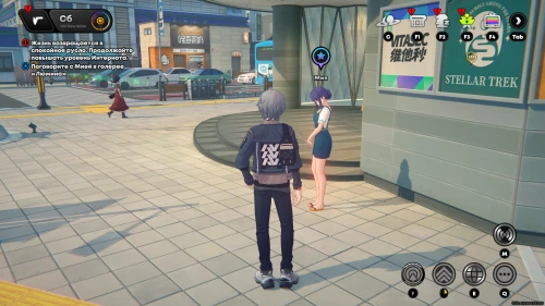 Переместитесь к «Пешеходной зоне» на площади Люмины, а затем поверните камеру направо, и вы увидите Печального банбу возле стены. Поболтайте с ним для начала городской миссии «Любовь в дождливую ночь». Далее вам необходимо пообщаться с Мией, стоящей возле галереи «Люмина».