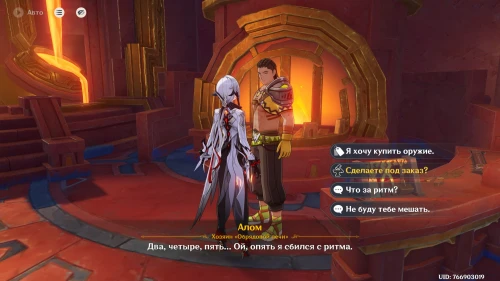 Первым делом вам нужно будет добраться до Натлана и дойти до Стадиона священного пламени, расположенного в западной части основной локации. Ели вы уже сделали это, то просто переместитесь к восточному телепорту арены. Далее поднимитесь по ступенькам впереди и сверните в дверь с левой стороны, как показано на скриншотах ниже. Обойдите стену, пройдите через проход и спуститесь вниз. Здесь вы обнаружите кузницу и мастера по имени Алом.