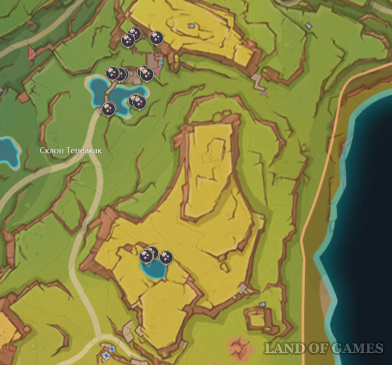 Одно из нововведений Натлана — сундуки, в которых помимо привычного лута можно найти местные диковинки. Один из таких находится в пещере, где можно собрать это растение. Дополнительные 8 штук будут ждать вас, если вы одолеете нескольких воинов Кованого песка и их тепетлизавров.