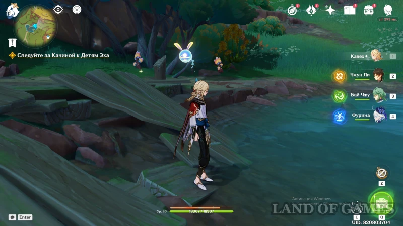 От телепорта в лагере ученого бежим к озеру с капибарами, на берегах которого растут шесть Лап заврианов.