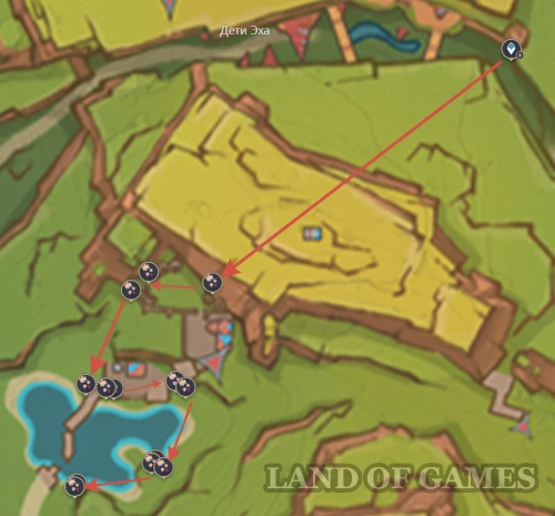 На карте указан маршрут фарма от телепорта, но собирать диковинки можно и после завершения предыдущего маршрута, поскольку эти локации располагаются в непосредственной близости.