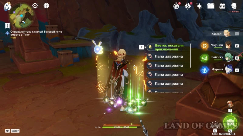 Совет: перед фармом Лап заврианов начните сюжетный квест Натлана, чтобы получить бесплатную Качину, которая значительно облегчит сбор диковинок благодаря своему Благословению Ночного духа, которое поможет быстро карабкаться по отвесным скалам, а ее талант будет отмечать растения на мини-карте.