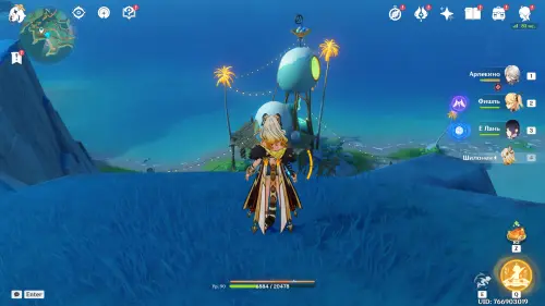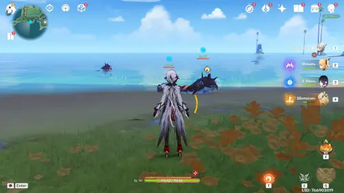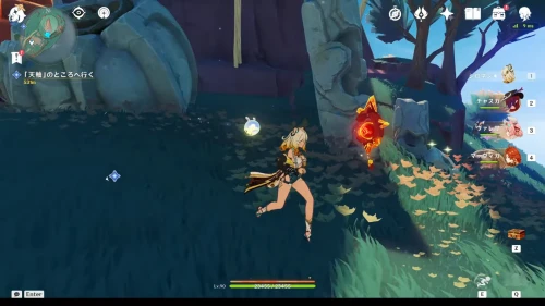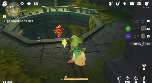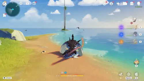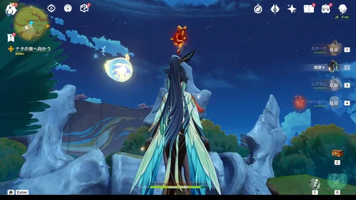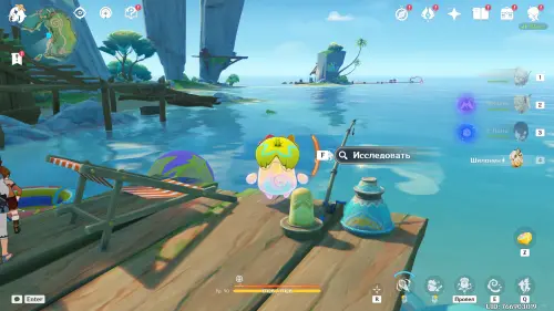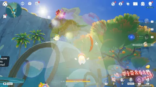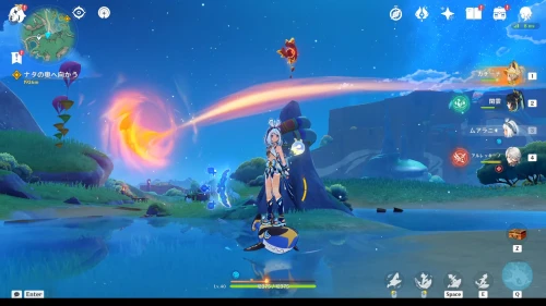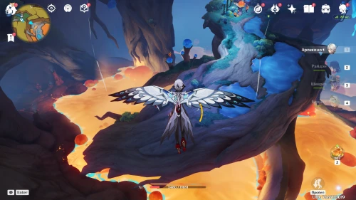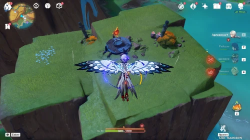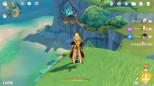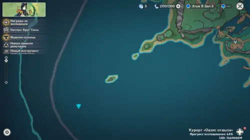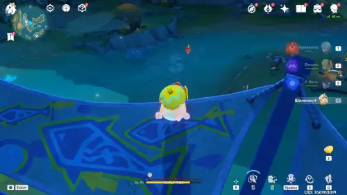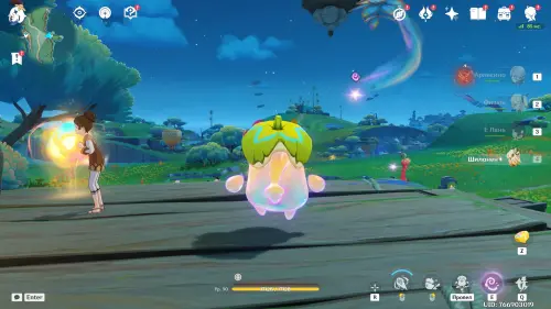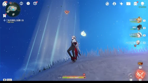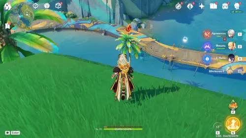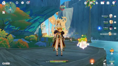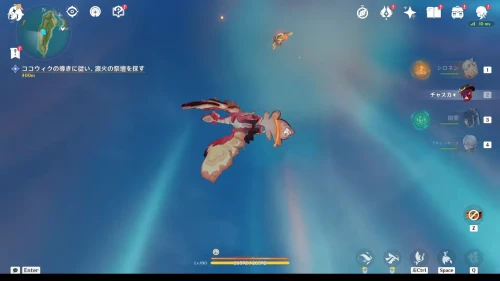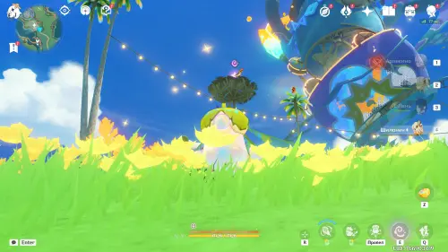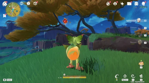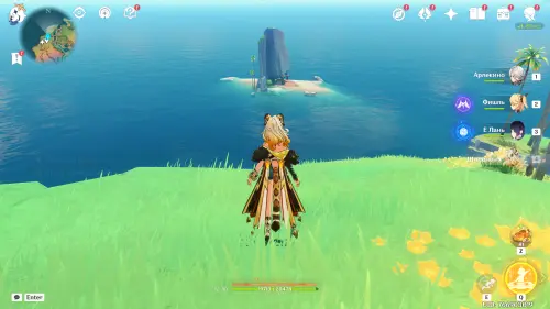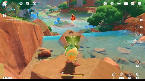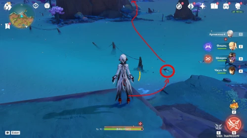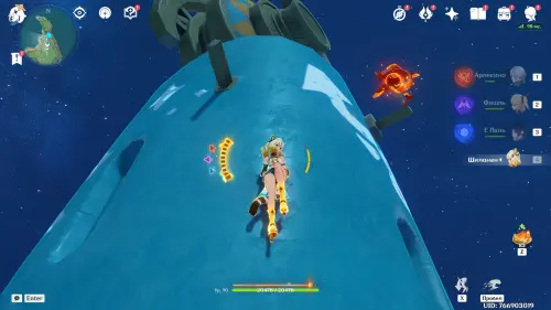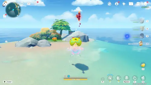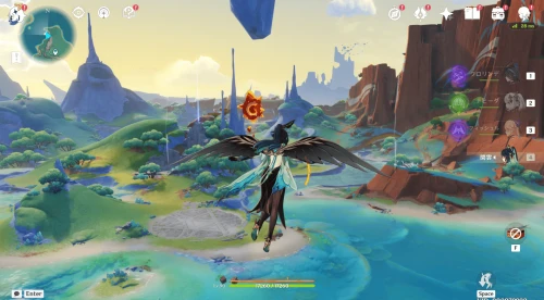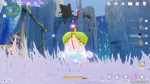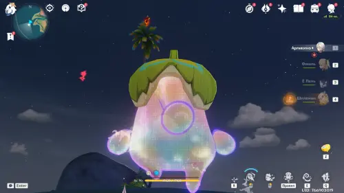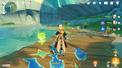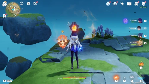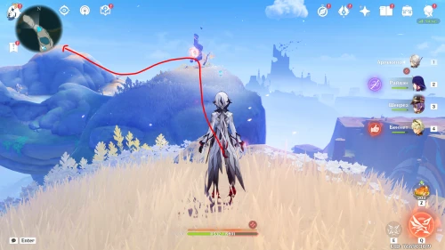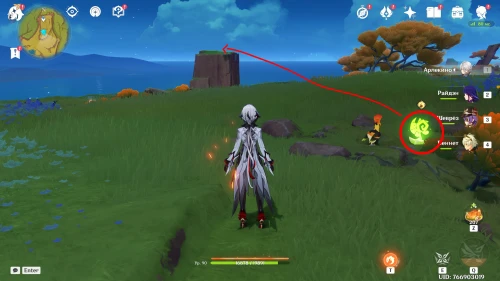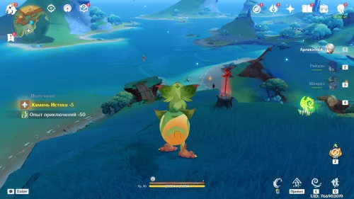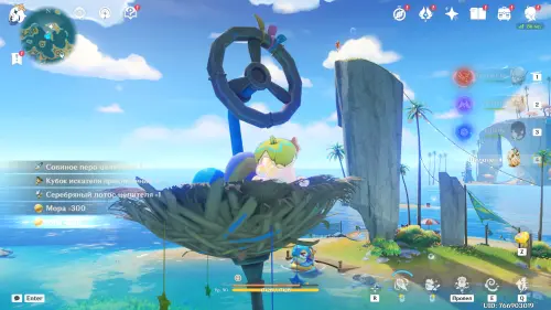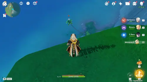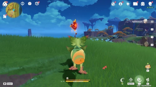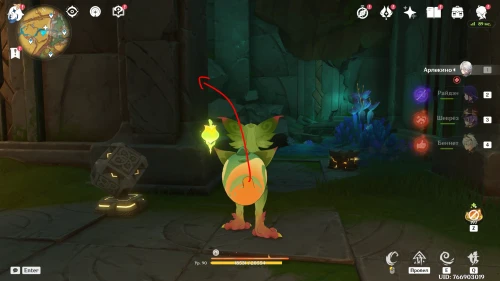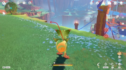 Переместитесь к самому южному телепорту основного острова, а затем бегите на север в сторону статуи Пиро Архонта и, не доходя до нее, вы обнаружите спящую на земле ашу – трансфомируйтесь в нее, а потом двигайтесь на запад по воде, пока не доберетесь до острова, где и парит частица. Отметим, что рядом можно также отыскать шляпу Ранти.