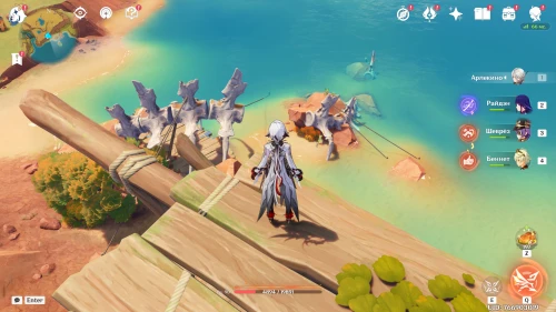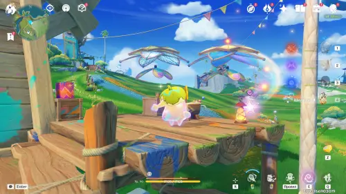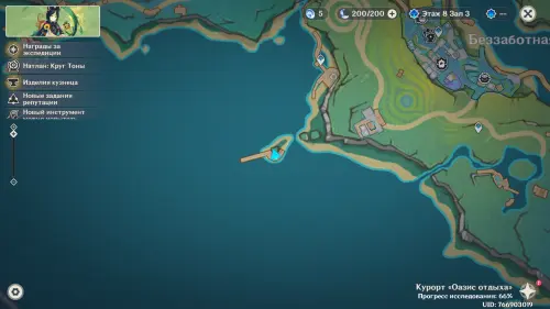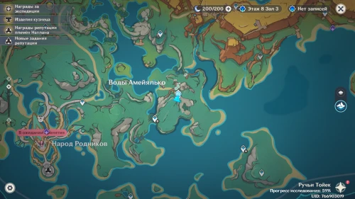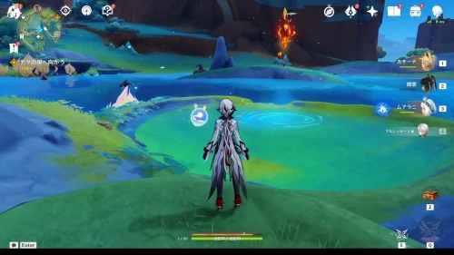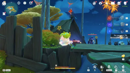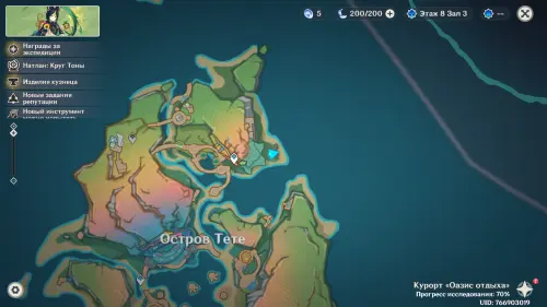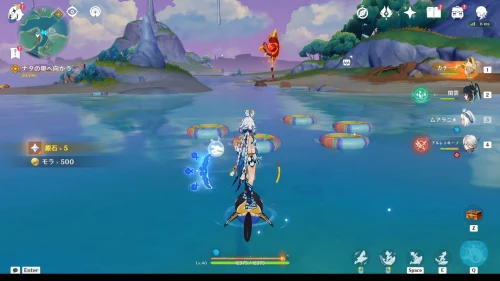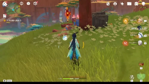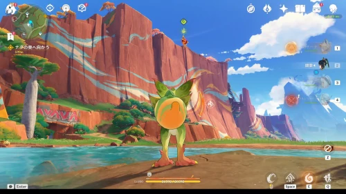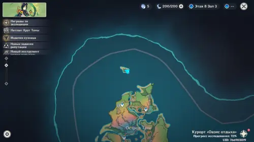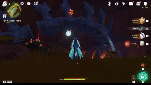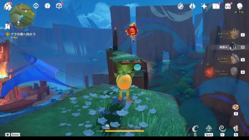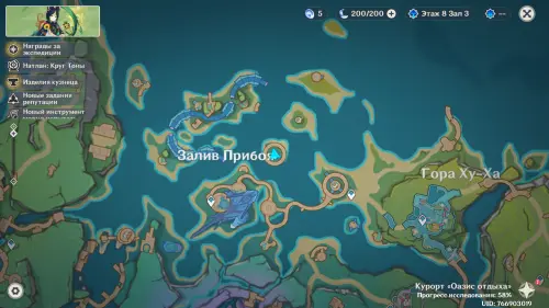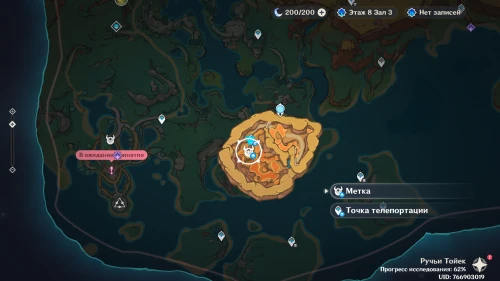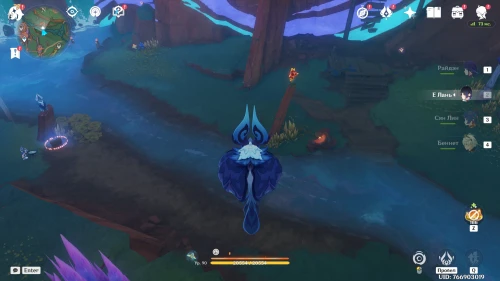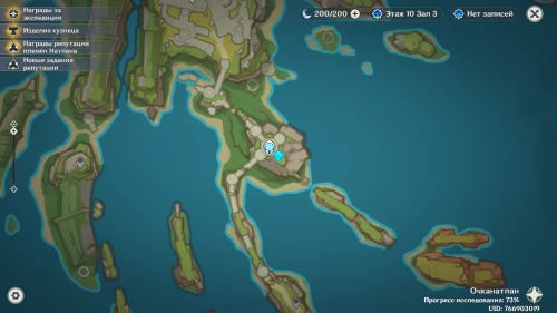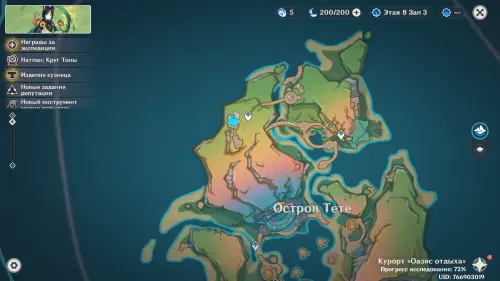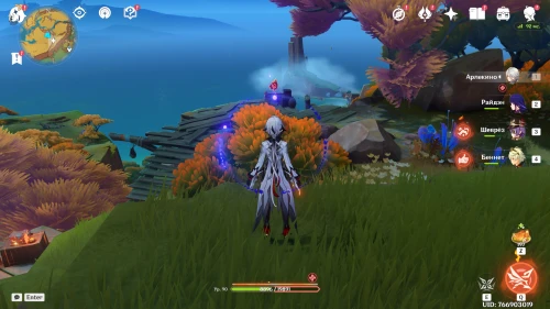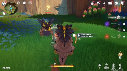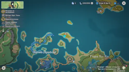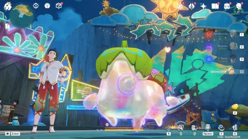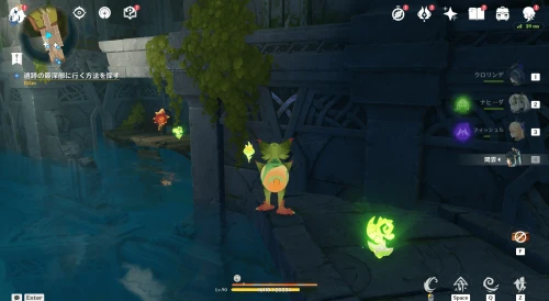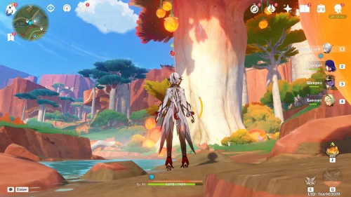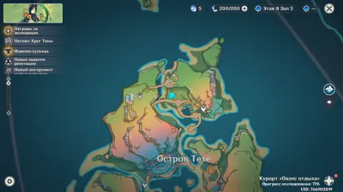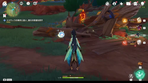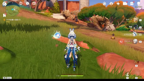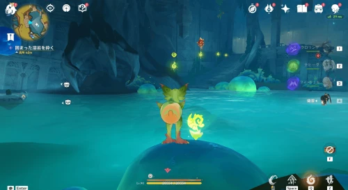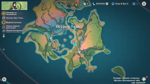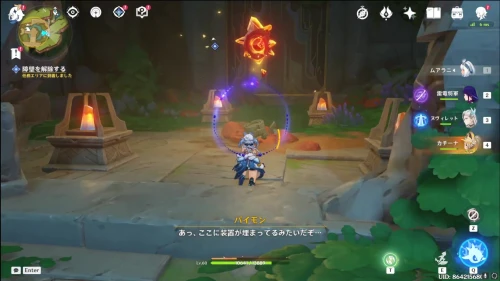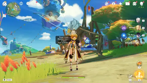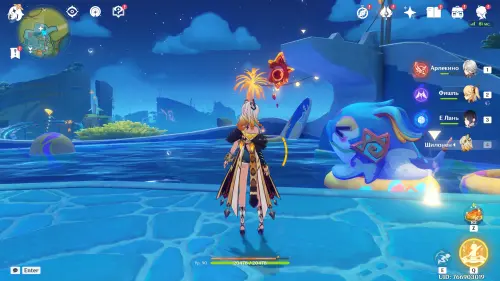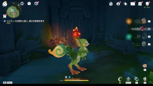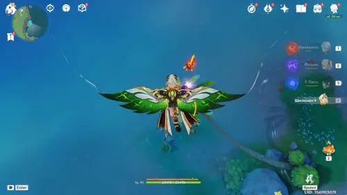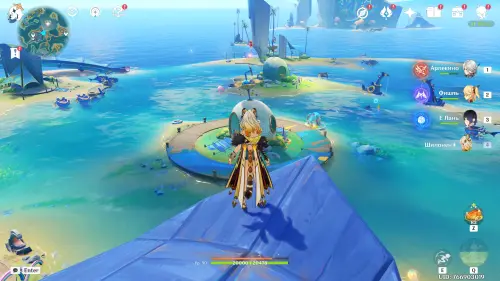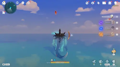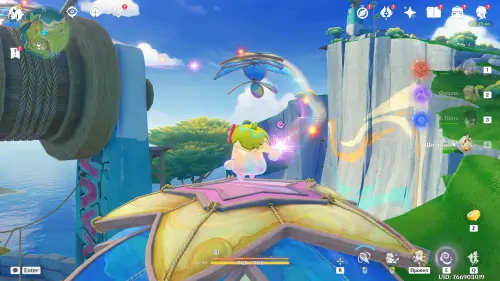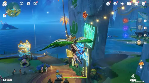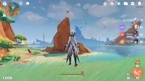 Переместитесь к самому южному телепорту основного острова, а затем бегите на север в сторону статуи Пиро Архонта и, не доходя до нее, вы обнаружите спящую на земле ашу – трансфомируйтесь в нее, а потом двигайтесь на запад по воде, пока не доберетесь до острова, где и парит частица. Отметим, что рядом можно также отыскать шляпу Ранти.