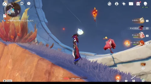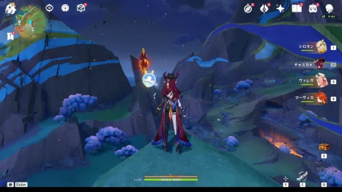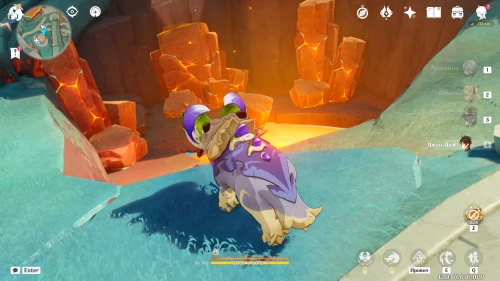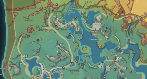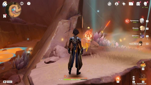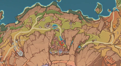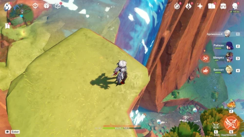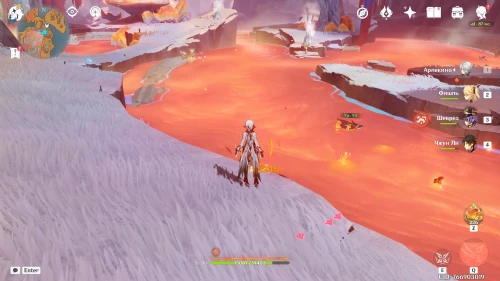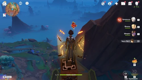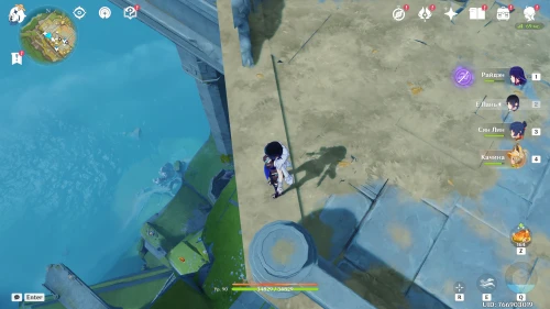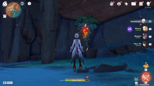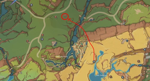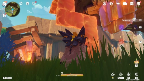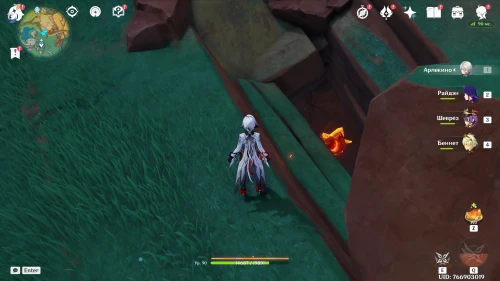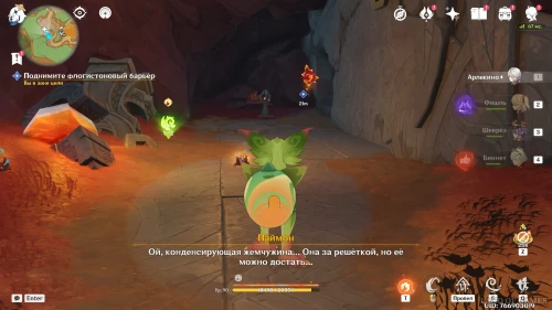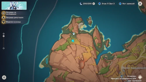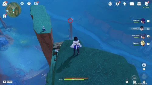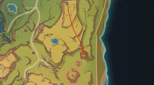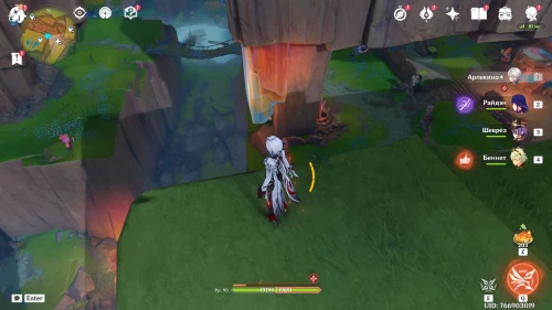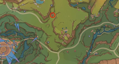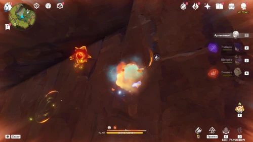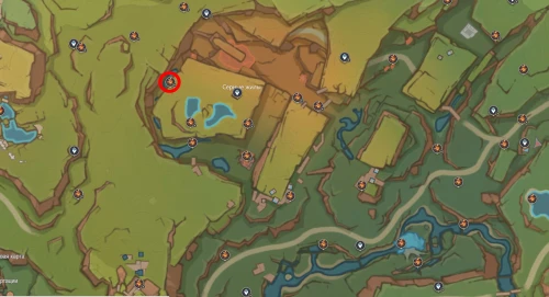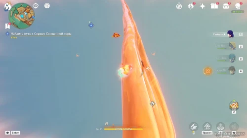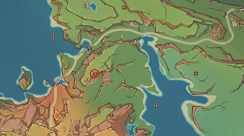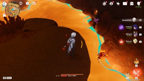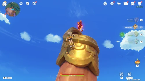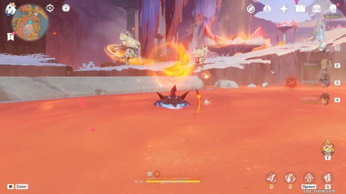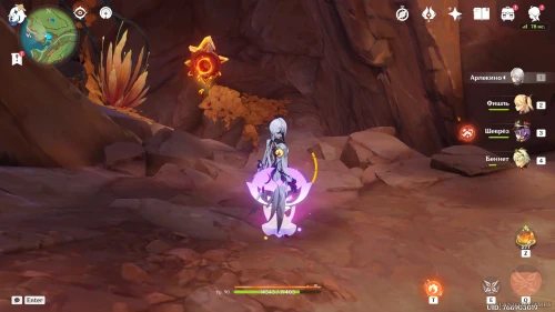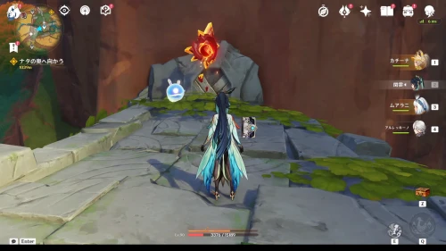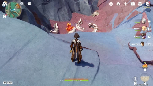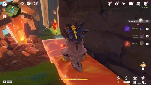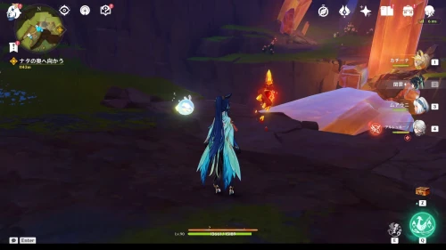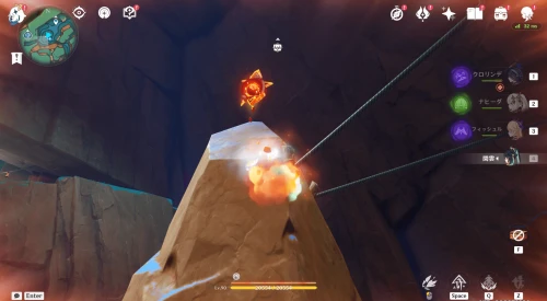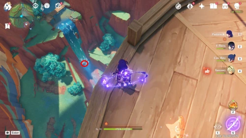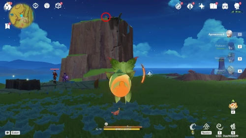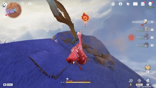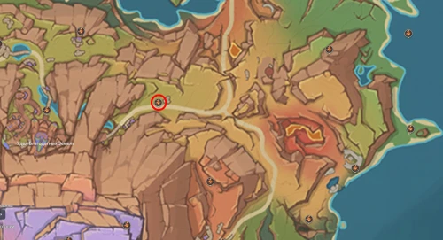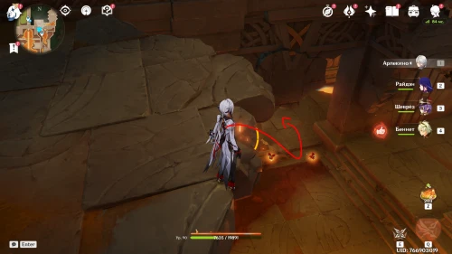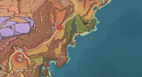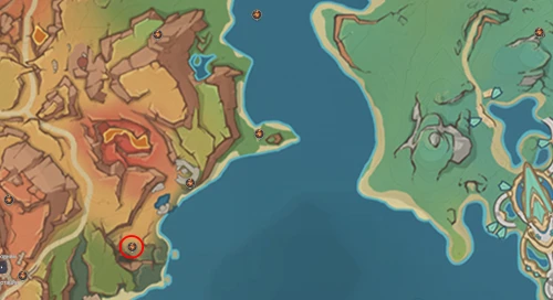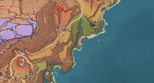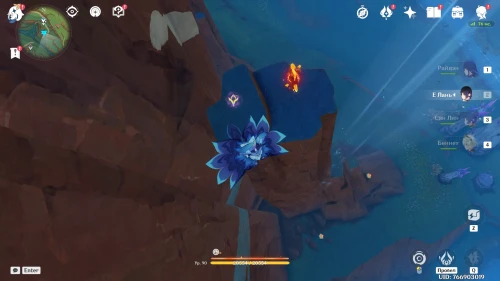 Переместитесь к центральному телепорту указанной области, а затем развернитесь и бегите в западном направлении к небольшому каменному утесу. На его верхушке вы обнаружите огненную частицу. Будьте осторожны, так как рядом бродят Фатуи.