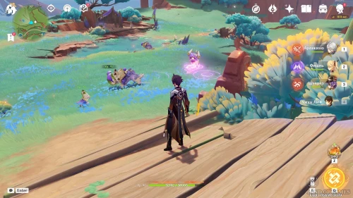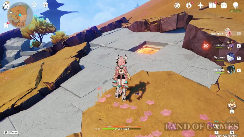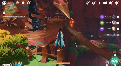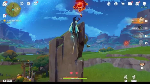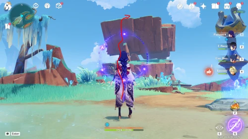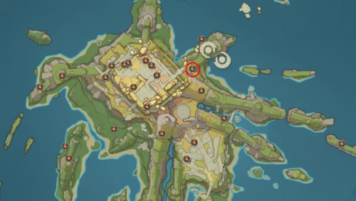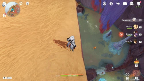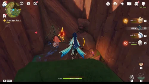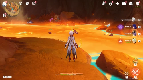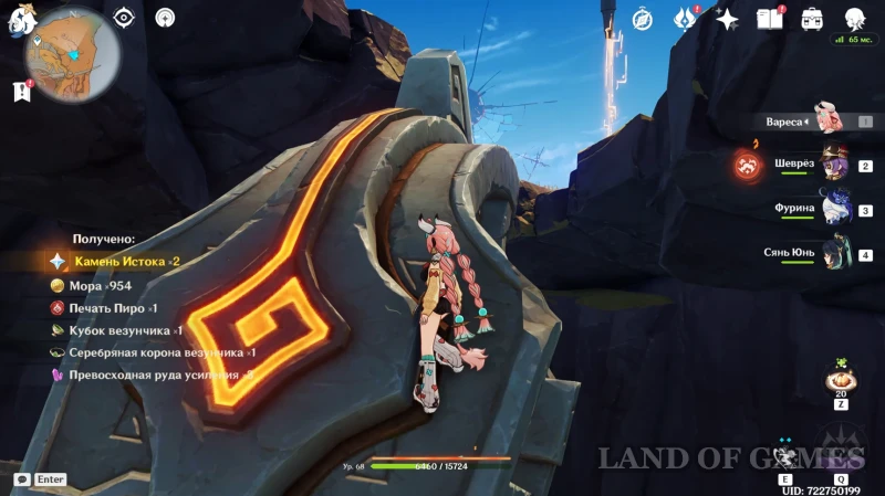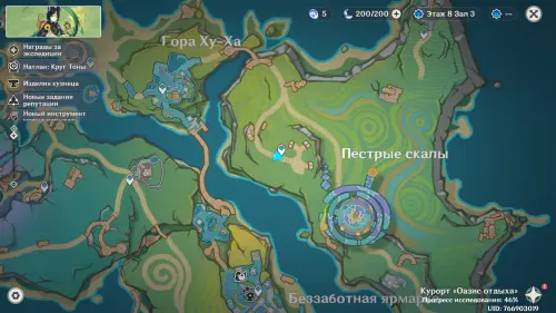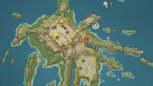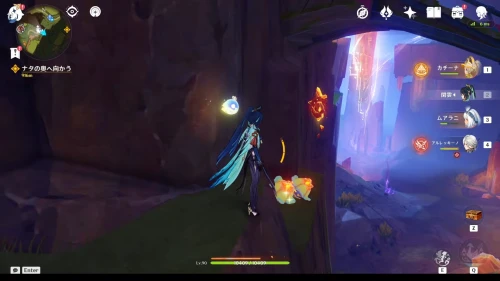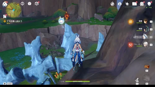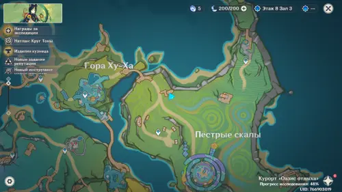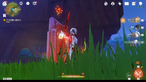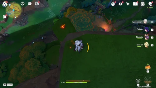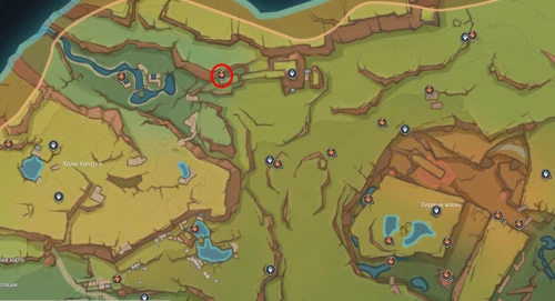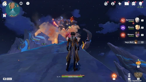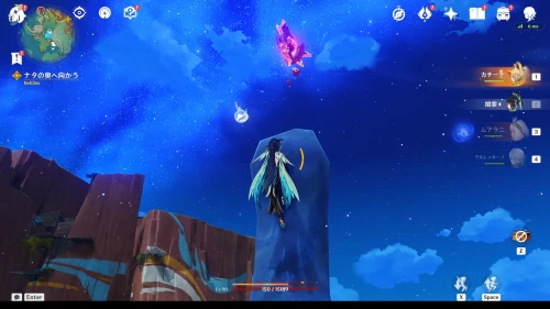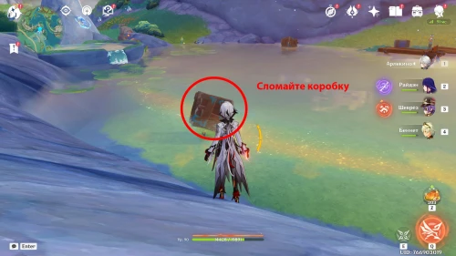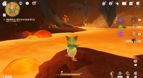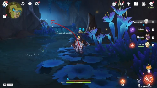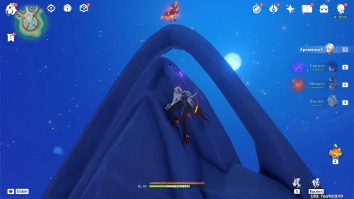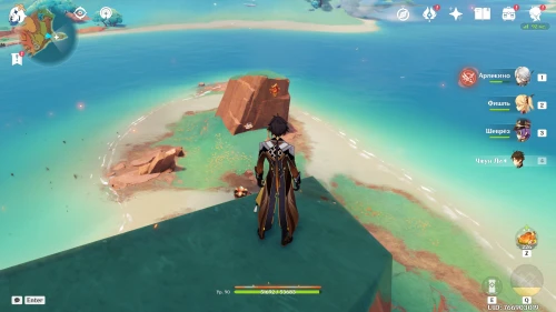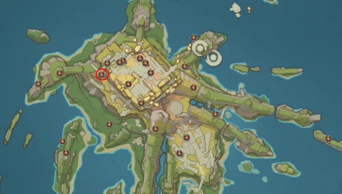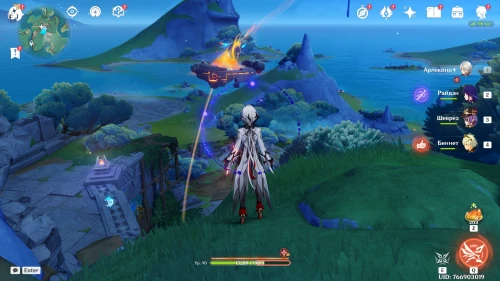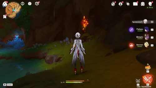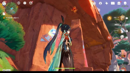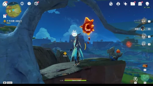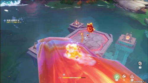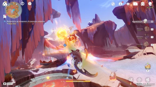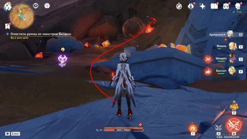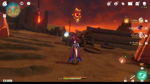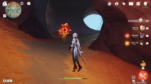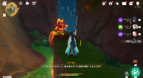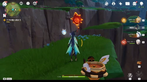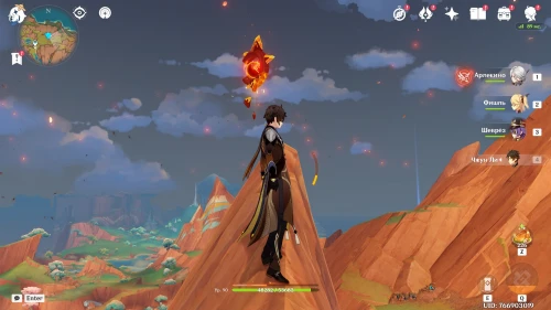 Переместитесь к центральному телепорту указанной области, а затем развернитесь и бегите в западном направлении к небольшому каменному утесу. На его верхушке вы обнаружите огненную частицу. Будьте осторожны, так как рядом бродят Фатуи.