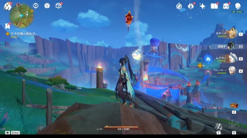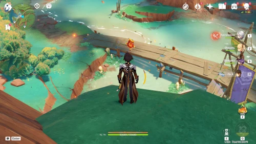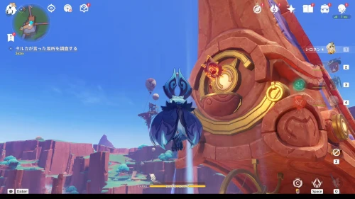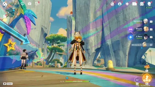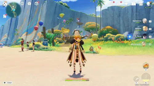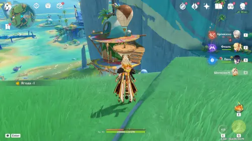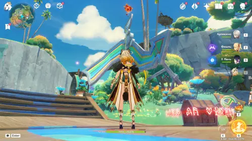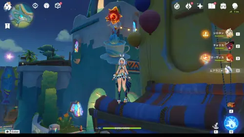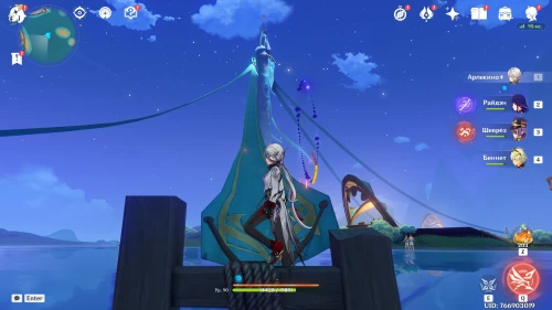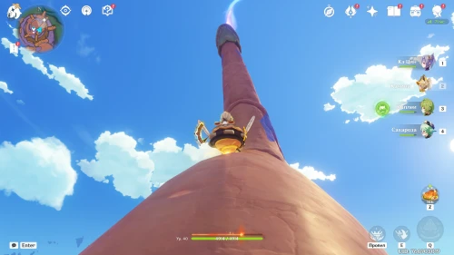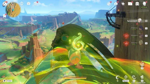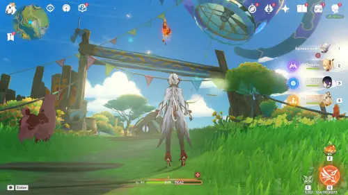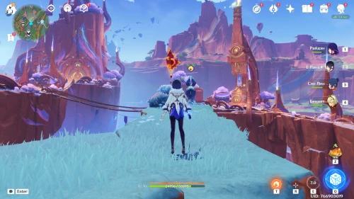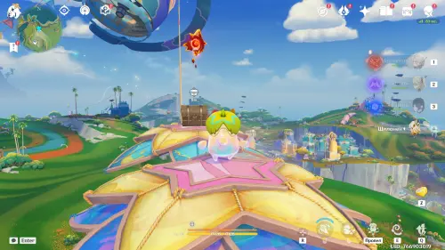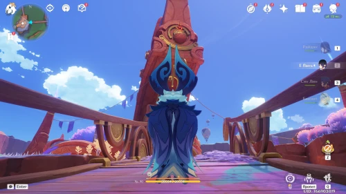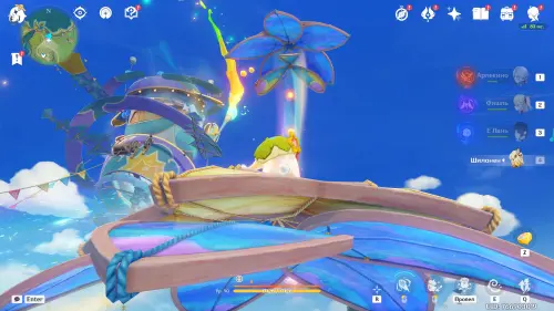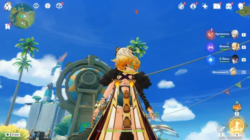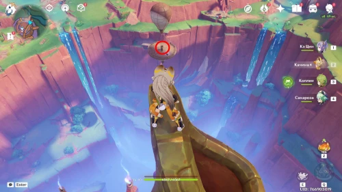 Переместитесь к телепорту, расположенному к востоку от указанной области, а затем поднимите камеру вверх, и вы сразу же увидите окул высоко в небе. Для его сбора вам нужно будет решить небольшую головоломку. Превратитесь в ближайшего ашу, а затем притянитесь к цветной дорожке (клавиша «Е»), чтобы подняться на воздушный шар.