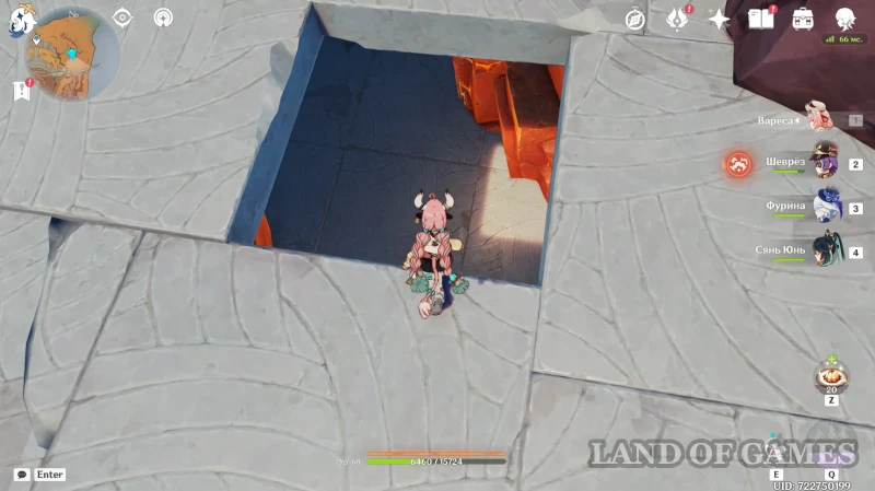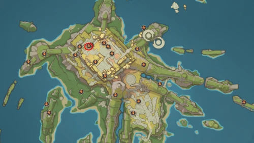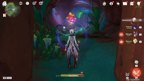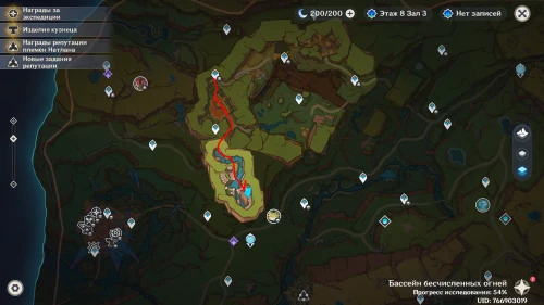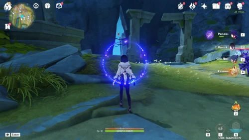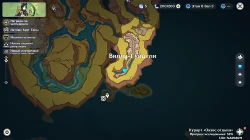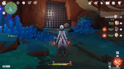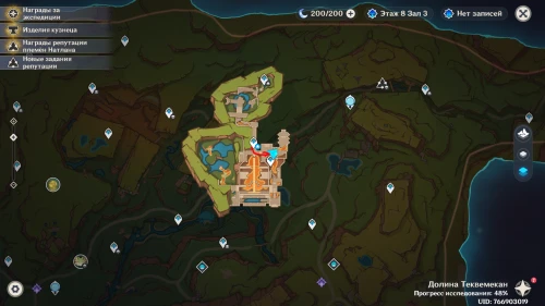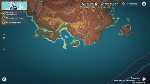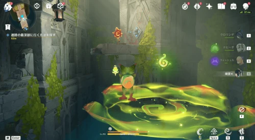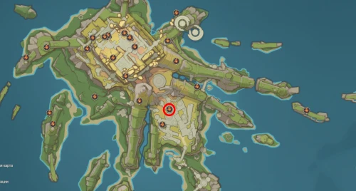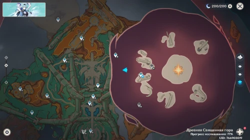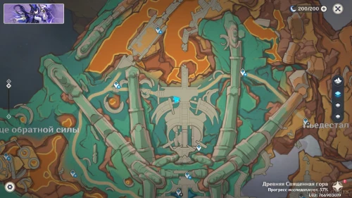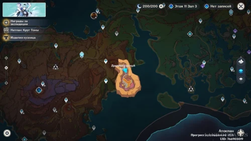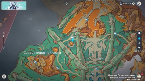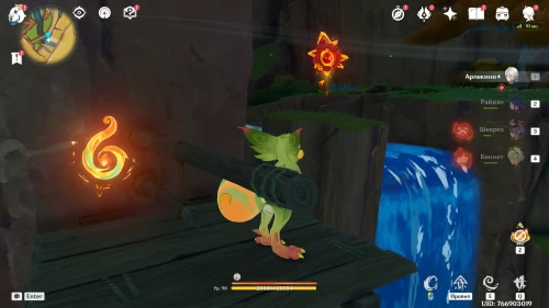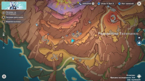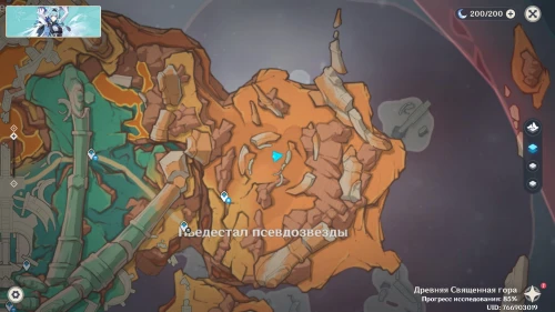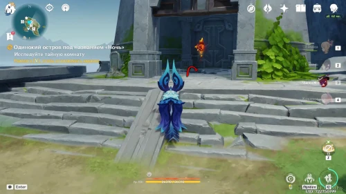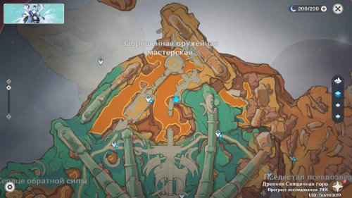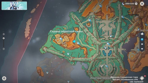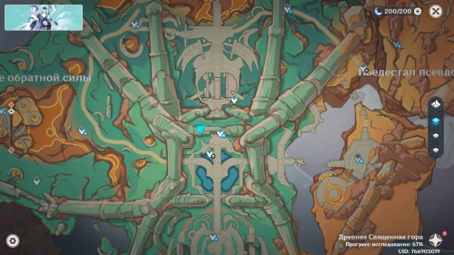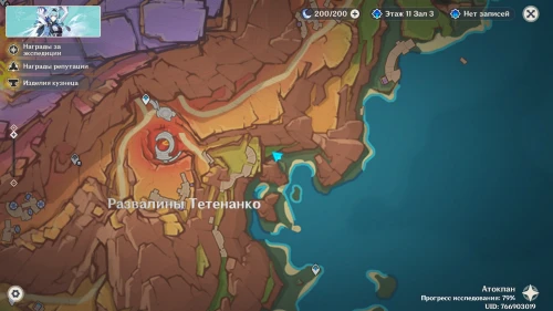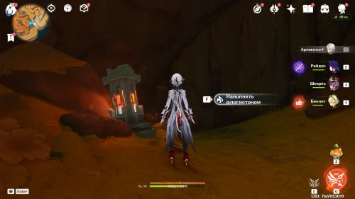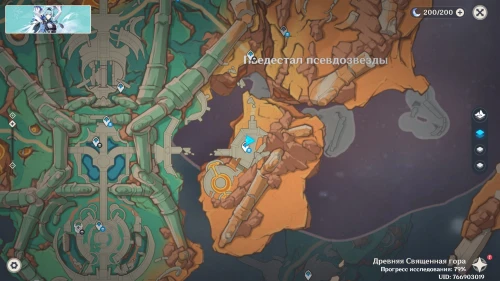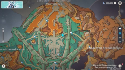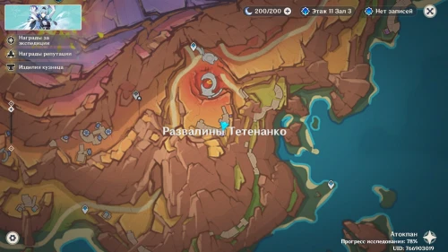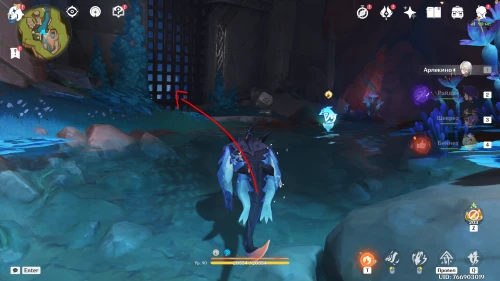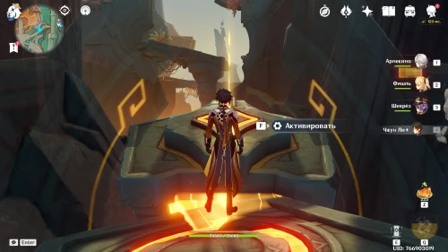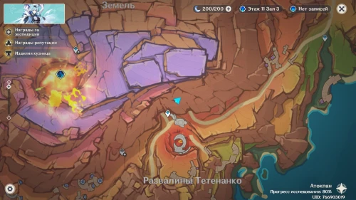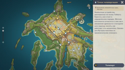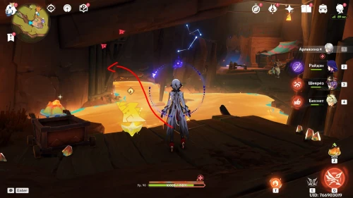 Вы сможете попасть в эти подземные руины во время или после прохождения задания мира «Откровения прошлого». Переместитесь к северному подземному телепорту, а затем спрыгните вниз и пройдите в просторную область, где нужно решить головоломку с платформами и рычагами. Здесь рядом Пиро тотемом вы обнаружите нужную вам частицу.