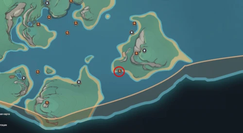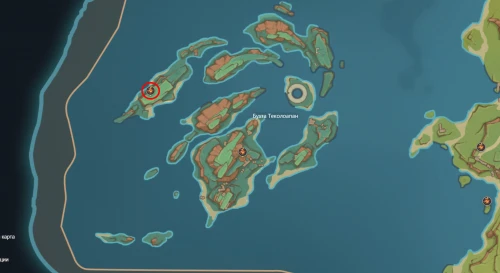 Телепортируйтесь к самой южной путевой точке основного острова, а затем начните двигаться на юго-запад к побережью моря. Здесь превратитесь в кохолазавра (клавиша «Е») и продолжайте плыть по воде в юго-западном направлении, минуя парочку островков. Вскоре над водой вы должны будете заметить окул. Воспользуйтесь водным трамплином под ним, чтобы подобрать его.