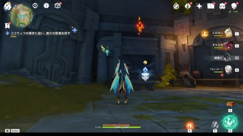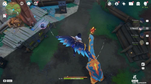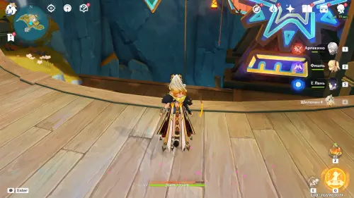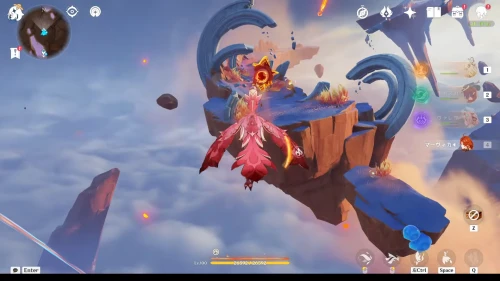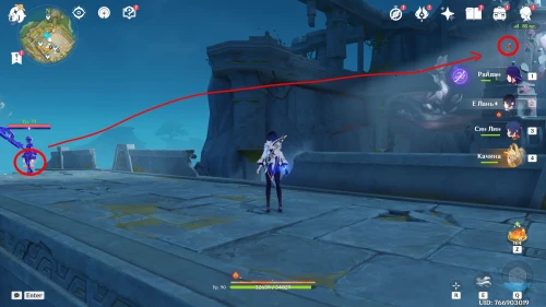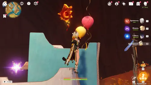 Телепортируйтесь к статуе Пиро Архонта, а затем поверните камеру вверх, и вы тут же увидите немного впереди окул, парящий над платформой. Можете просто превратиться в ближайшего ашу и притянуться к звездочке, нажав на клавишу «Е».