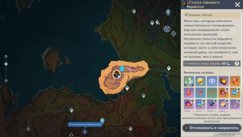 Собрав определенное количество пирокулов, вам нужно будет приблизиться к любой Статуе Пиро Архонта и поклониться ей, передав все накопленные частицы. Тем самым вы поможете ей восстановить былую силу, и получите ценное вознаграждение, включая достижение, за которое дают 20 примогемов. Список наград представлен в таблице ниже.