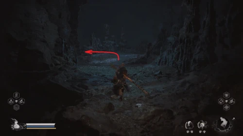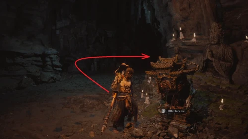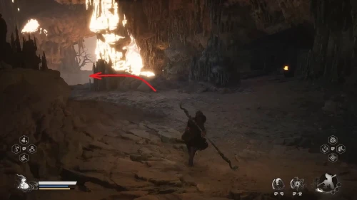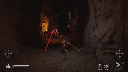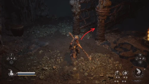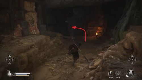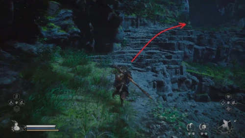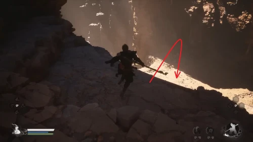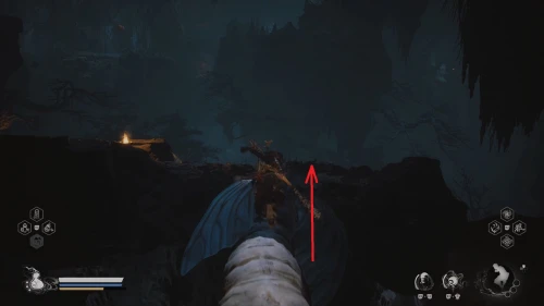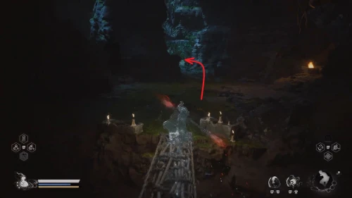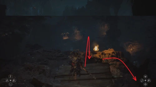Добраться до этого места можно от алтаря благовоний Скала забвения в Паутиновой яме. От этой точки поверните направо как показано на скриншотах, пробегите по туннелю вперед, пока не дойдете до деревянного мостика. Спрыгните с него и сразу сверните направо.