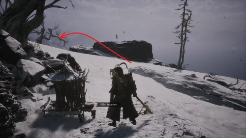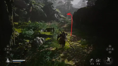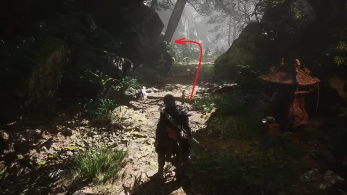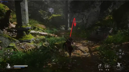 Следуйте вперед, пока не выйдите наружу. Поверните налево на каменную дорожку и пройдите за деревом направо. Идите вперед по локации и поднявшись по ступенькам, поверните налево. Далее пройдите через остатки разрушенного деревянного моста, где издалека вы уже сможете увидеть нужный алтарь.