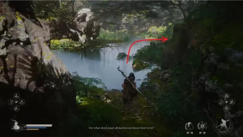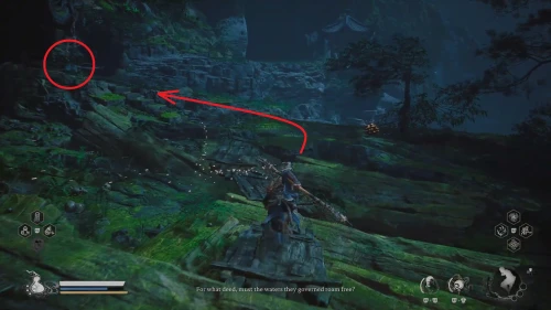 С помощью найденных ранее Чешуек луна, взаимодействуйте с водопадом. Печать снимется и вы сможете пройти в скрытую локацию где вам необходимо будет драться с первым боссом яогуаи — Красным луном.