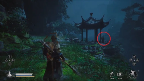 Активируйте его и поднимитесь по каменным ступеням. Наверху в беседке вы увидите последнего Желтого луна.