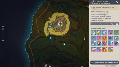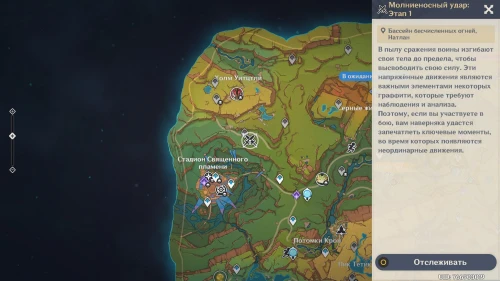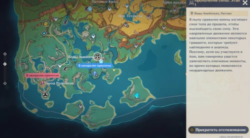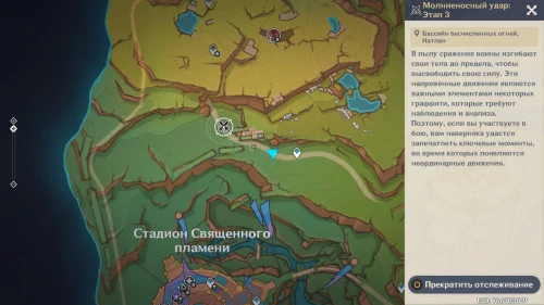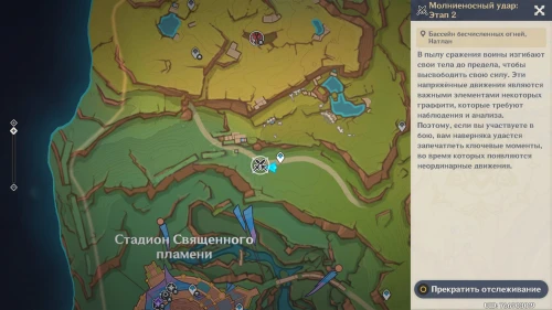 Начните его отслеживание и направляйтесь к области, расположенной возле статуи Пиро Архонта в водах Амейялько. Вступите в схватку с рядовыми охотниками. Разобравшись с ними, победите двух лавоподобных монстров. Затем вам предстоит уничтожить Воплощение Вайоб обращенного течения. Отметим, что этот новый враг способен поглощать энергию ваших персонажей. Если же успеете разрушить его щит до истечения срока действия Арены, то вернете себе всю энергию. В ином случае он преобразует ее в щит.