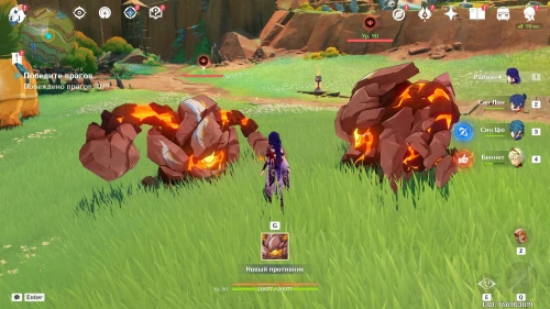Начните его отслеживание и направляйтесь к области, расположенной к северу от Стадиона Священного пламени. Далее вступите в схватку с двумя Разрушающимися аватарами земли. Затем вам нужно будет победить нескольких рядовых противников. Советуем вам взять в команду своих самых прокаченных персонажей.