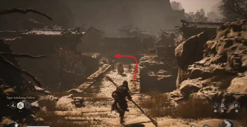 Пройдите через ворота и бегите вверх по тропинке, где будет находиться важный алтарь благовоний — Деревня предела ветров. Активируйте его и следуйте далее. Пройдите через мост, а затем сверните налево. Обойдите дом и выйдите на просторную площадь, где слева будет находиться огромный мост с боссом Слуга тигра.