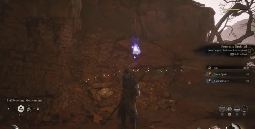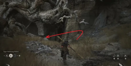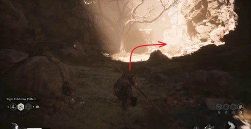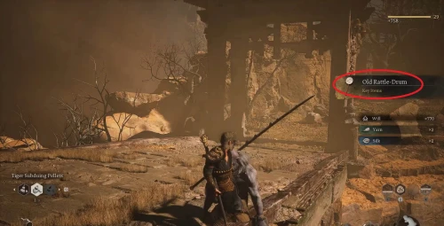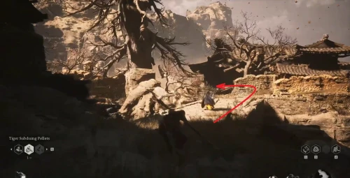 Возвратитесь к алтарю Деревня предела ветров, где вы ранее победили босса Стража тигра, и развернувшись, бегите в обратную сторону. Снова пройдите через ворота, сверните налево, где на очередном пустом месте снова появится возможность воспользоваться погремушкой.