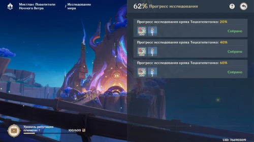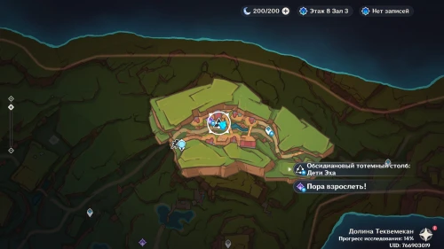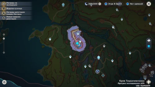 - Исследовать долину Теквемекан. За каждые 20%, 40% и 60% прогресса в изучении региона вы будете получать по 200 опыта репутации и 2 священных масла. Речь идет об активации телепортационных точек, нахождении сундуков, сборе пирокулов и так далее. Интерактивная карта может заметно упростить все эти действия.