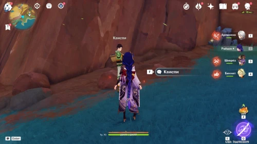 Телепортируйтесь к путевой точке в южной части Храма предков, а затем спрыгните с деревянной платформы и спланируйте в западном направлении. Впереди возле подножья скалы вы увидите человека – приблизьтесь к нему. Его зовут Квиспи.