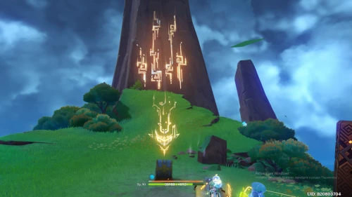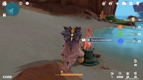 Это боевое испытание, оно станет доступно только когда будут завершены остальные три. После активации монумента появится дендро вайоб, а когда мы расправимся с ней придут еще две вайоб — гео и гидро, их тоже нужно победить.