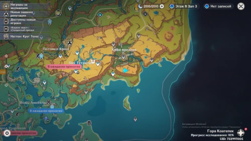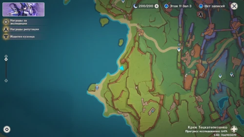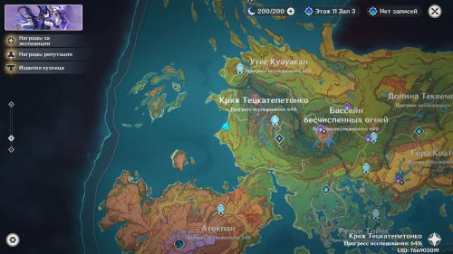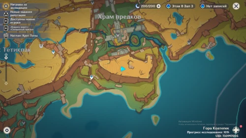 Переместитесь к телепорту к западу от поселения Повелителей Ночного Ветра на кряже Тецкатепетонко, а затем двигайтесь на юг и спрыгните с утеса, планируя в южном направлении к скале впереди. Обойдите гору справа, и в углублении вы увидите Пиро тотемы и противников, с которыми необходимо разобраться.