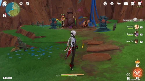 Бонус: за поляной с тотемами находится огороженное кривым забором место, над которым летает анемо слайм. Лопните его, на его месте появятся три других, которых тоже нужно будет лопнуть. После этого вы получите обычный сундук.