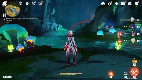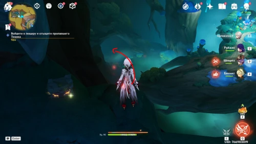 Если вы не забрали роскошный сундук при прохождении задания, то переместитесь к телепорту. Затем спрыгните вниз в обширную область и спланируйте к проходу в пещеру с левой стороны. Начните углубляться в нее, пока не окажитесь в пещере, затопленной водой.