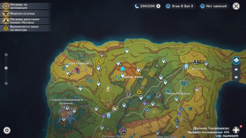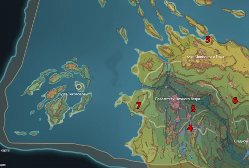На карте выше показано примерное расположение всех роскошных сундучков в Натлане (включая те, которые спрятаны в усыпальницах глубин). Далее мы более подробно рассмотрим их получение.