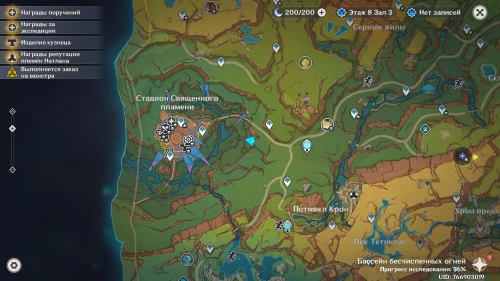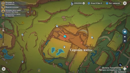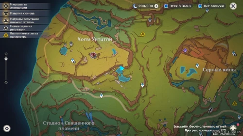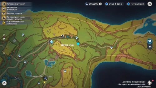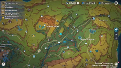С повышенной вероятностью отыскать их можно на территории Долины Теквемекан, так как они связаны с племенем Дети Эха. Эта зона охватывает только Склон Тепеакак и Серные жилы. На карте ниже показаны все драгоценные и роскошные сундуки соответствующего района, а также испытания духовного пути.