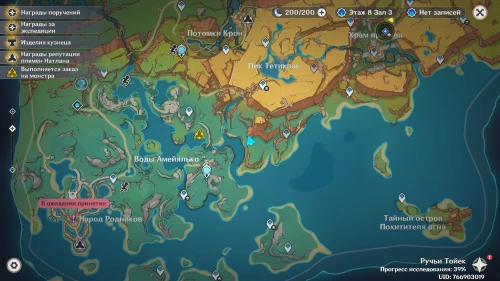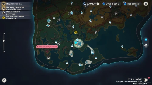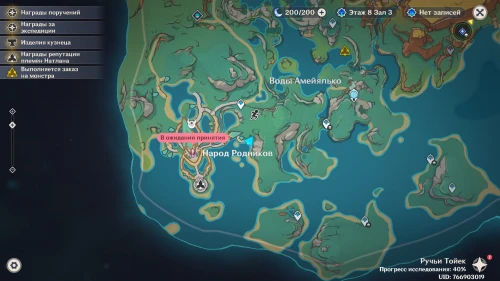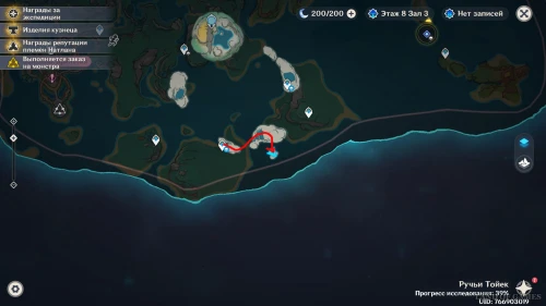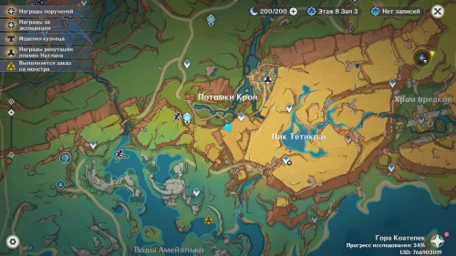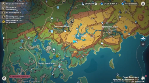 С повышенной вероятностью отыскать их можно на территории Ручьев Тойек, так как они связаны с племенем Народа Родников. Эта зона охватывает Воды Амейялько, Тайный остров Похитителя огня и поселение Народа Родников. На карте ниже показаны все драгоценные и роскошные сундуки соответствующего района, а также испытания духовного пути.