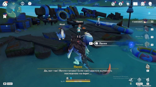 Когда все три пухляша насильно окажутся на берегу, начнется небольшая катсцена с Иваем, резвящимся в воде. Пания поблагодарит нас, и мы получим драгоценный сундук и достижение «Полуденные морские птицы».