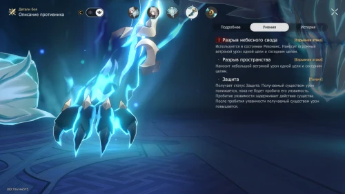 Проводит мощную атаку по всем героям и усиливает себя в зависимости от частей тела с непробитой уязвимостью. Урон от этого умения увеличивается на 250% атаки, если не пробиты уязвимости головы и хвоста, и на 350%, если не пробиты когти.
