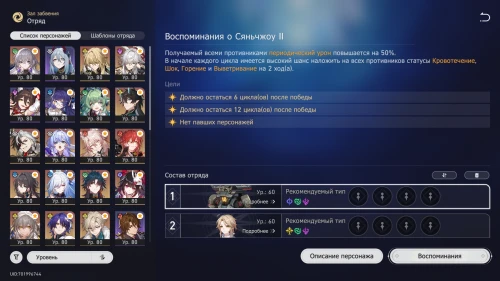 - Постарайтесь поставить в отряд тех саппортов, которые используют свои навыки на союзниках, а не бьют по врагу, чтобы даже нечаянная базовая атака под баффами Расходящейся вселенной не уничтожила босса.