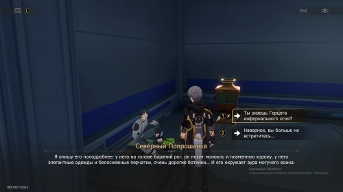 Попрошайка спросит нас, не видели ли мы кого-нибудь с бараньим рогом на борту корабля. Из его последующего описания можно будет понять, что торговец ищет Герцога инфернального огня. Они должны были встретиться, но теперь это невозможно благодаря Ахерон. После этого Попрошайка внезапно намекнет нам, что мы должны ему что-то предложить.