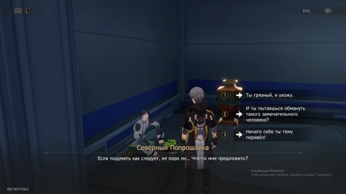 В области швартовки на корабле «Рассекатель небес» можно найти торговца по имени Северный Попрошайка. От якоря просто поднимитесь по ступенькам, где и сидит нужный нам НПС. Подойдите к нему и начните диалог.