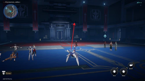 Переместитесь на Нижний этаж арены «Рассекателя небес». Полный доступ к судну можно получить после завершения сюжетной миссии «Поединок под лазурным небосводом II». Когда вы окажетесь в нужном помещении, бегите к восточной его стене. Там, практически напротив телепорта, порхает обеспокоенная робоптаха. Начните разговор с ней, чтобы запустить квест.