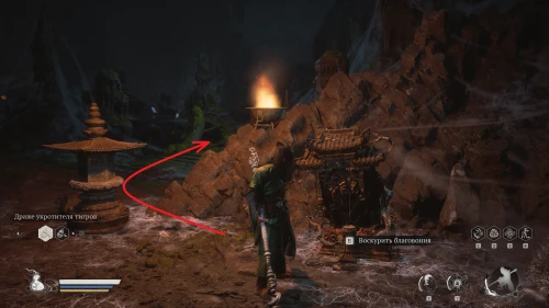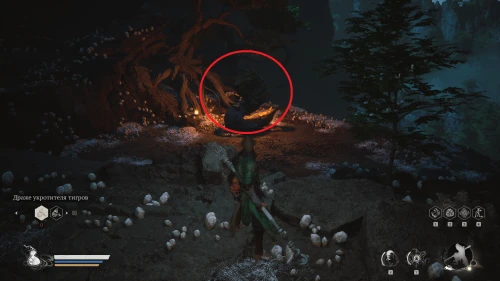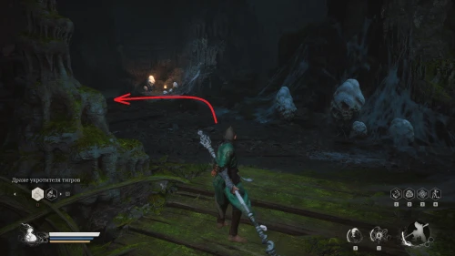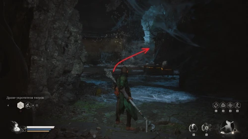 Следуйте вглубь пещеры, где вы увидите червя-яогуая. Спуститесь на арену и победите его. После битвы в вашем списке важных предметов появится Проточервь-ненасытник.