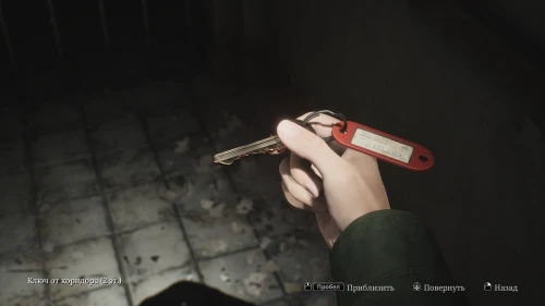 Отправляйтесь обратно в вестибюль, но сразу после входа в здание поверните налево. Теперь дверь в правую часть коридора на первом этаже открыта. Дойдите до железной решетки и поднимите ключи от коридора (2 эт.). На обратном пути не забудьте посетить комнату 108, в которой находится Ручка в виде золотого яблока.
