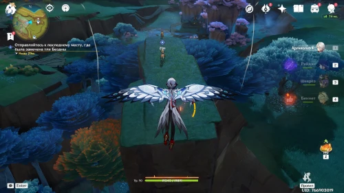 Собирайте по пути фрукты (нужно бить цветки) и огоньки для активации сети и подпитки флогистона. Если насекомое успеет перебраться на другую сторону ущелья, то спланируйте на скалу, а потом используйте навык Шилонен, чтобы быстро забраться на гору. Подробное прохождение испытания представлено на видео выше.
