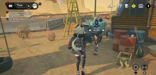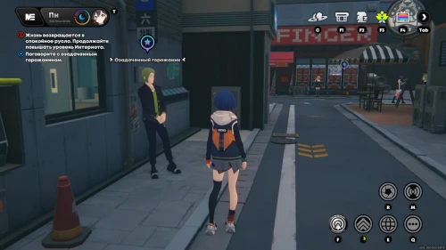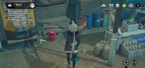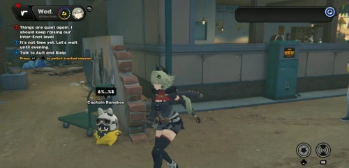 Вечером за углом дома слева от Мяучело вам нужно найти и починить Возмездебу. Вам необходимо вовремя нажимать на кнопку, когда красный круг приблизится к зеленому. Круги исчезают после появления и вновь становятся видны лишь тогда, когда приближаются к зеленой отметке.