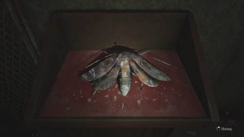 Последние мотыльки расположены в соседнем помещении. Необходимо лишь взломать стену и отодвинуть шкаф, за которым будет находиться очередная картина с мотыльками.