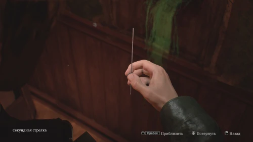 В закрытой комнате обыщите отверстие в стене и заберите секундную стрелку.
