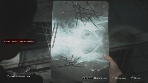 Доберитесь до рентгеновского кабинета через окно смотрового кабинета номер 5 и изучите стол. Вы найдете записку и рентгенограмму таза. Остальные снимки вы увидите прикрепленными к негатоскопу на стене кабинета. Однако, прочитав записку, окажется, что одного снимка будет не хватать.