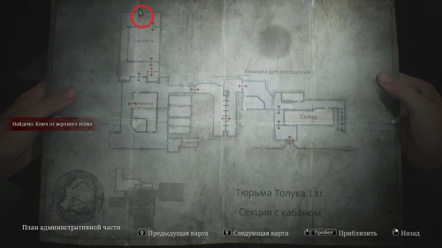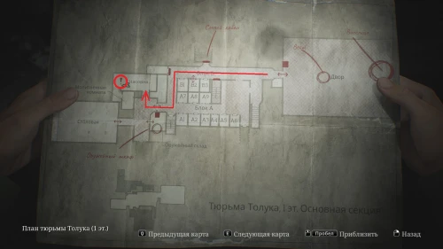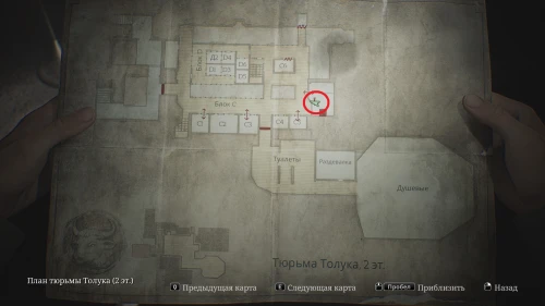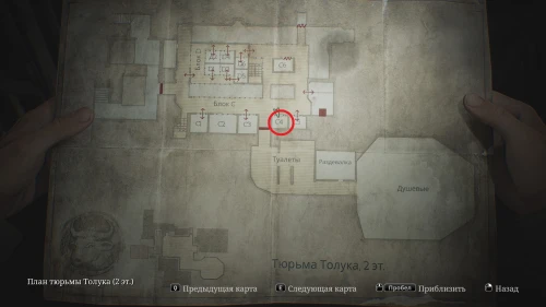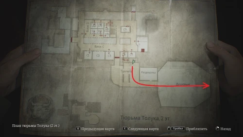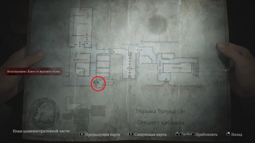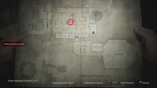 Первая точка на карте, которую надо посетить в этой части тюрьмы — санчасть. На столике в санчасти вы обнаружите ключ от верхнего этажа.